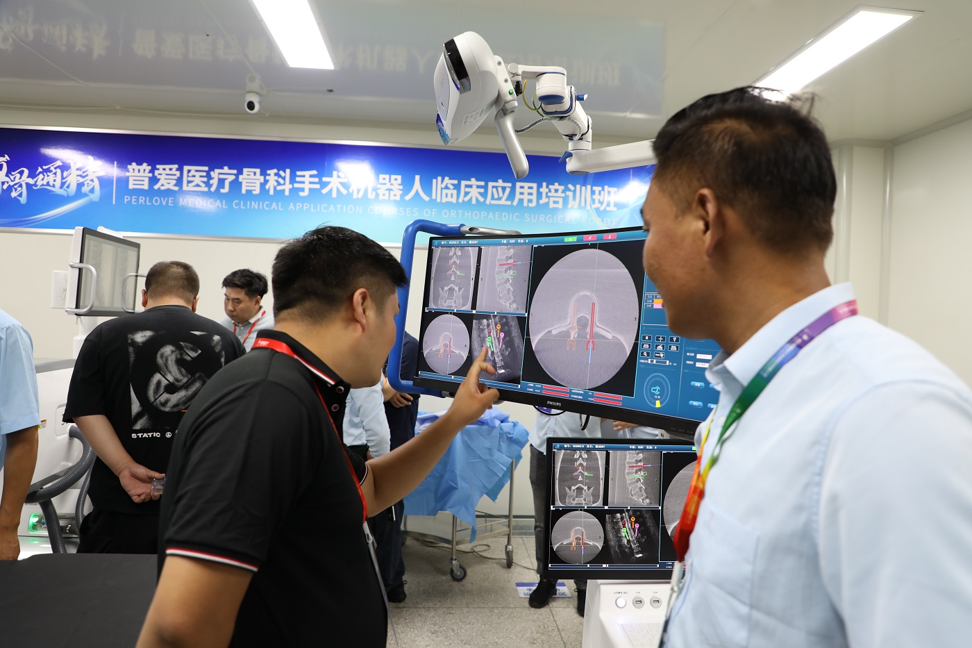 在實操演練環(huán)節(jié),普愛醫(yī)療為學(xué)員提供身臨其境的模擬實戰(zhàn)體驗,幫助他們在骨科專家的指導(dǎo)下學(xué)會如何操作手術(shù)機器人進行精準(zhǔn)的手術(shù)路徑規(guī)劃,并掌握機器人在復(fù)雜手術(shù)環(huán)境中的穩(wěn)定表現(xiàn)與應(yīng)急處理能力。