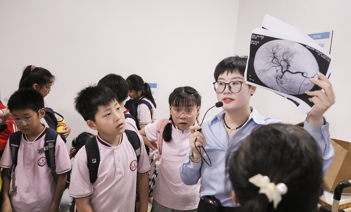 南京市拉薩路小學(xué)五年級的150多名師生來到了普愛醫(yī)療科普展廳,展廳內(nèi)的智能化科技展品讓同學(xué)們好奇心爆棚。