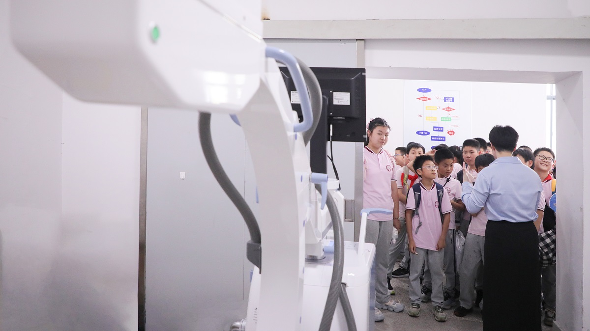 為了向同學(xué)們更直觀地展示醫(yī)療設(shè)備誕生的過程,理解科技發(fā)展為人類疾病的精準(zhǔn)診療發(fā)揮著怎樣的價(jià)值,工作人員特別安排同學(xué)們參觀生產(chǎn)調(diào)試車間。見證一臺影像設(shè)備從安裝、調(diào)試到可以拍攝影像的完整流程。