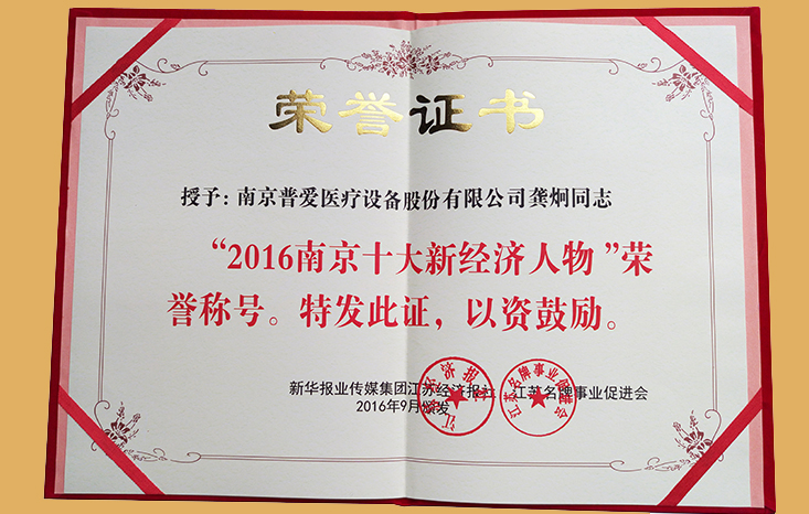 憑借著強烈的危機意識,前瞻性視野,普愛醫(yī)療總經(jīng)理龔炯女士帶領(lǐng)著公司全員走出了一條轉(zhuǎn)型升級的崛起與發(fā)展之路。 2016年9月28日,普愛醫(yī)療總經(jīng)理龔炯女士榮獲2016南京十大新經(jīng)濟人物榮譽。
