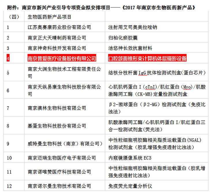 普愛醫(yī)療口腔CBCT 入選《2017年南京市生物醫(yī)藥新產(chǎn)品》